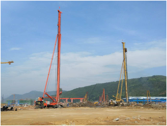 本工程2017年6月30日開始施工,于2018年2月7日竣工,共計(jì)完成樁徑500mm,樁長(zhǎng)22m-35m,樁數(shù)5212根,混凝土強(qiáng)度為C25,混凝土方量29432m³。高峰期時(shí)投入長(zhǎng)螺旋鉆機(jī)7臺(tái)套,挖掘機(jī)3臺(tái)。