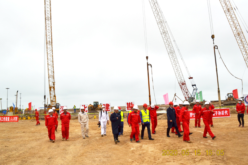 2020年5月15日下午,國家管網集團副總經理姜昌亮帶隊,國家管網集團、總包海工集團有關領導一行,來到我公司龍口南山LNG一期工程接收站工程施工現場進行觀摩考察,巖土工程公司李友東經理、劉帥副經理和項目經理李亮親自迎接,并與國家管網姜昌亮副總經理、中海油LNG董事長王曉剛親切交談,介紹了現場施工情況。姜昌亮副總經理、王曉剛董事長對我公司給予了高度評價和充分肯定,相信河北建勘一定能干好這個項目,并希望可以長期合作。