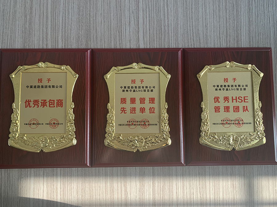 本項目作為2021年大型LNG儲罐項目,雖然受年初新冠疫情以及原材料供應方面問題的影響,我公司從項目籌備、項目防疫工作、人員籌備、設備組織管理、原材料的調研采購、質量管控、安全管控及后勤管控等方面,全面從嚴,科學管理,精心組織實施,確保了本項目樁基施工的高效、質優、安全完成。在建設期間,未發生安全與質量事故,園滿完成施工任務,達到安全與質量管理目標,且獲得總包方、監理方和建設方的一致認可。建設方和總包方聯合為我公司頒發了“優秀承包商”、“質量管理先進單位”和“優秀HSE管理團隊”的榮譽稱號。
