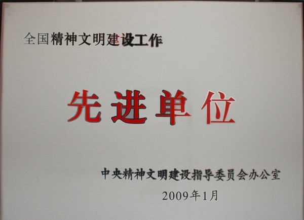 近年來,我公司堅持以科學(xué)發(fā)展觀為指導(dǎo),在全體員工中積極開展精神文明創(chuàng)建活動,文明施工程度和員工素質(zhì)不斷提高,精神文明建設(shè)取得顯著成績。近日,我公司受到中央精神文明建設(shè)指導(dǎo)委員會辦公室表彰,被授予“全國精神文明建設(shè)工作先進單位”稱號。