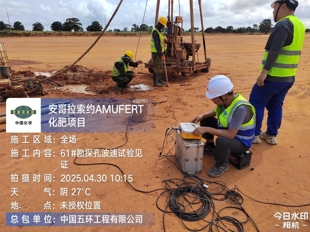 項目于2025年3月21日開工, 2025年5月29日按期圓滿完工,滿足進度要求。整個勘察施工過程成功實現“零安全生產事故、零職業病/傳染病事件、零環境污染事件”的目標,在復雜環境下,嚴格按合同要求高質量完成全部勘察工作。 項目質量管理、安全管理及進度控制均獲得建設單位安哥拉AMUFERT SA公司的高度認可和一致好評。
