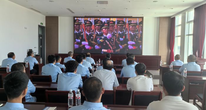 當威武雄壯的受閱方隊邁著鏗鏘有力的步伐走過,當各類現代化裝備依次亮相,當戰機編隊劃破長空,強大的陣容、恢宏的氣勢,讓觀看直播的職工們心潮澎湃,會議室里不時響起陣陣驚呼聲。