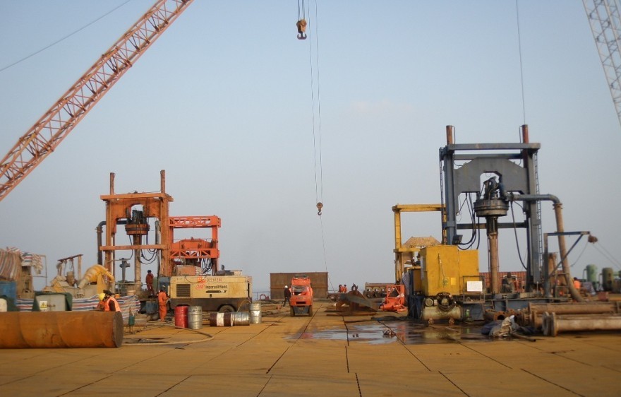 本工程豎井采用鉆井法施工。鉆孔采用全液壓鉆機氣舉反循環(huán)排渣、一次性鉆進(jìn)成孔;采用鋼井壁,漂浮法下沉,孔口焊接接長;壁后充填水泥漿進(jìn)行止水固壁。