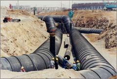 整個廠區(qū)降水面積880000 m2,降水深度7-12m,布置降水井105眼。工程設(shè)計方案采用管井降水,以截流為主,輔以疏導(dǎo)和局部圍降的方法。獲國家優(yōu)秀工程勘察銅獎。