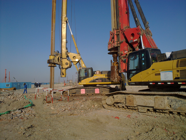 本工程共投入4臺旋挖鉆機、1套攪拌站、5臺50裝載機、4臺25噸吊車和4臺振沖器及其它配套施工機械設備,灌注樁共完成理論方量19169.7m3、振沖碎石樁理論方量13266m3。本工程試樁于2012年10月11日開始施工,12個日歷天完成。工程樁和振沖碎石樁于2013年1月2日正式開工,3月25日全部完成施工任務。